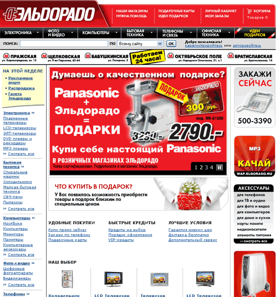 Я бы фирме, делающий дизайн для магазина за неделю никогда бы не доверил - 100% накосячат. А за 4 месяца - еще куда ни шло. Так что, правильные ребята дизайн делали. Да и не забывай, что Эльдорадо - не ИЧП "Акопян". Там свое начальство, своя приемка итд. Какой большой начальник не считает, что он лучше всех разбирается в дизайне?