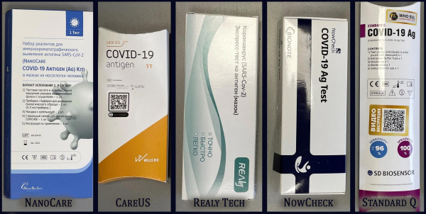 Наибольшее распространение в России получили пять экспресс-тестовых систем: NanoCare, CareUS, Realy Tech, NowCheck, Standard Q (SD Biosensor). Realy Tech — продукт китайского производства, остальные четыре разработаны в Южной Корее.
