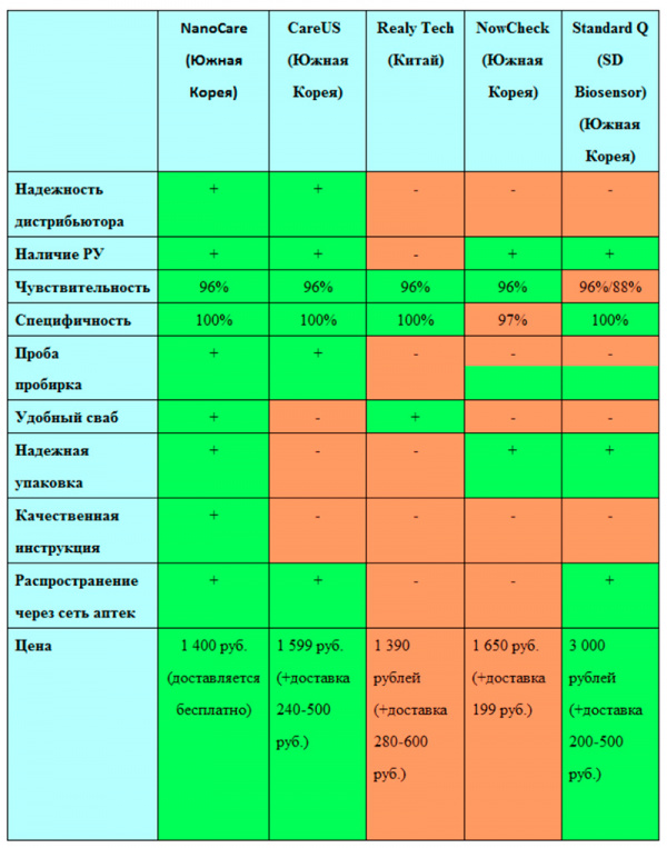 Наглядно видно, что из выбранных 5 тестов на антиген только NanoCare сочетает точность диагностики, удобство использования и надежность. Можно с уверенностью сказать, что распространяется он легально, с соблюдением условий хранения и транспортировки.