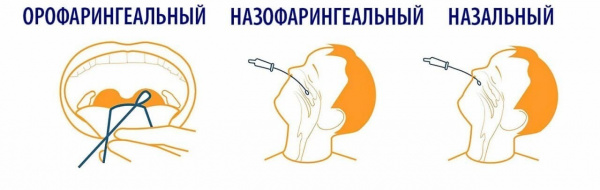 - из носоглотки — назофарингеальный способ;