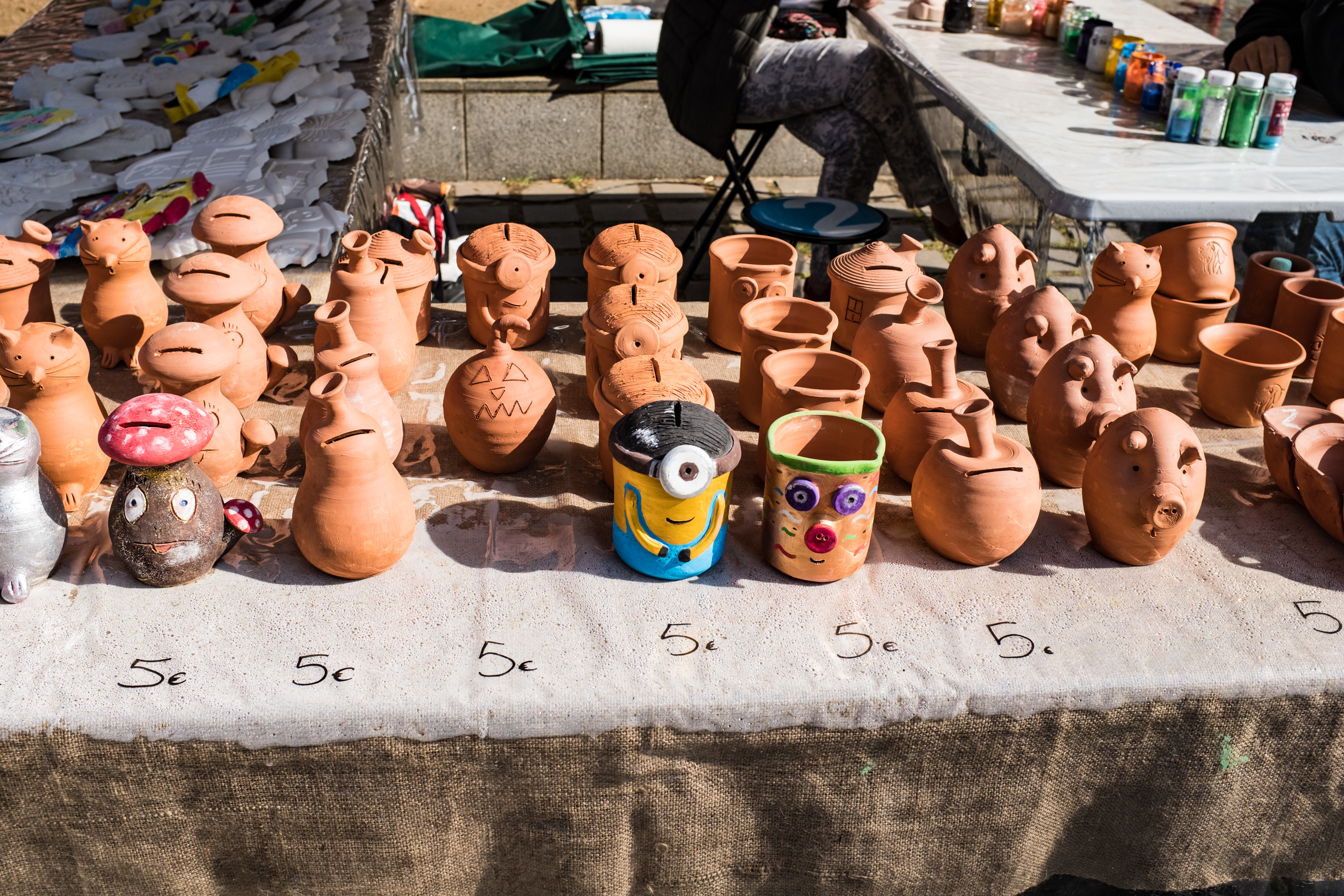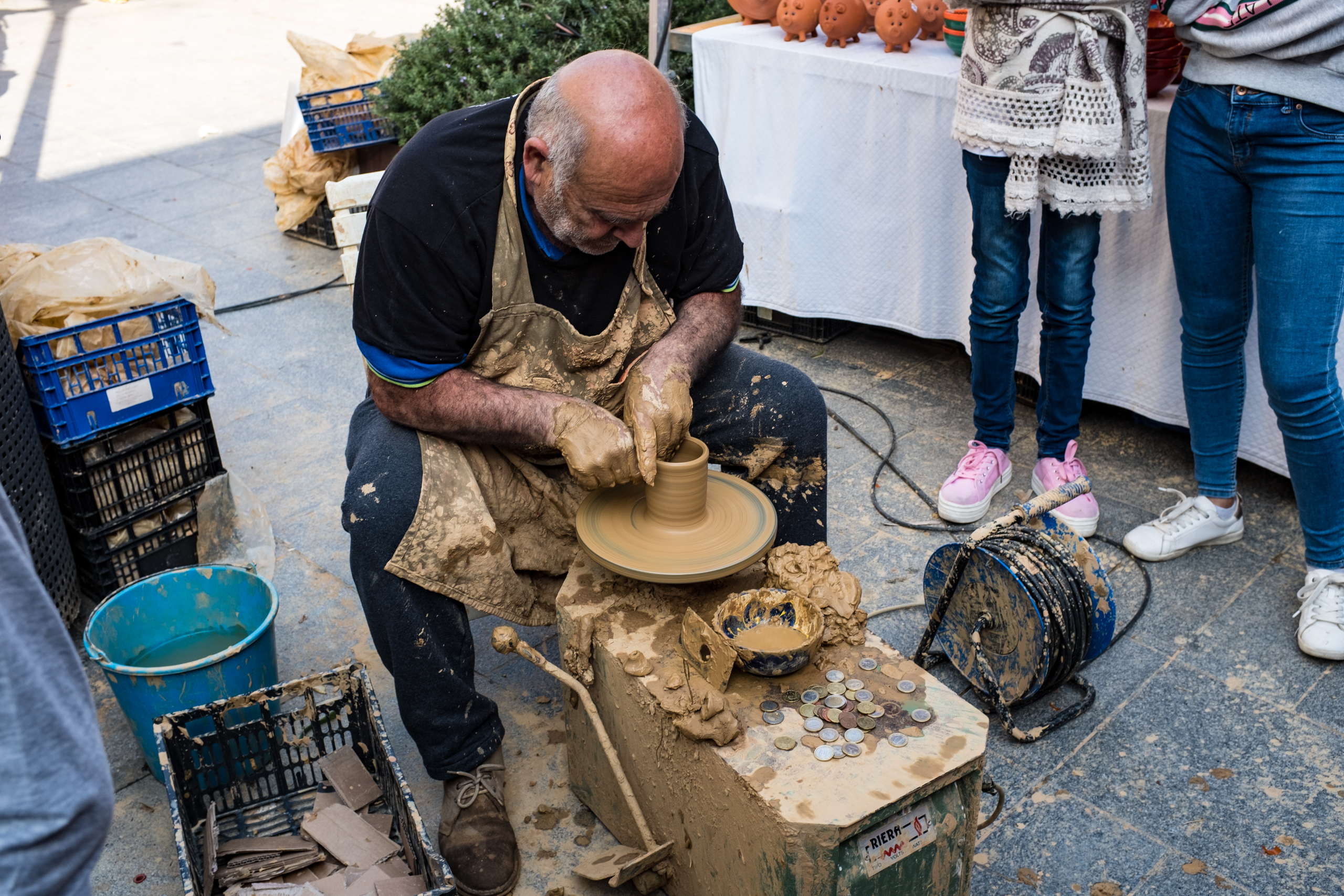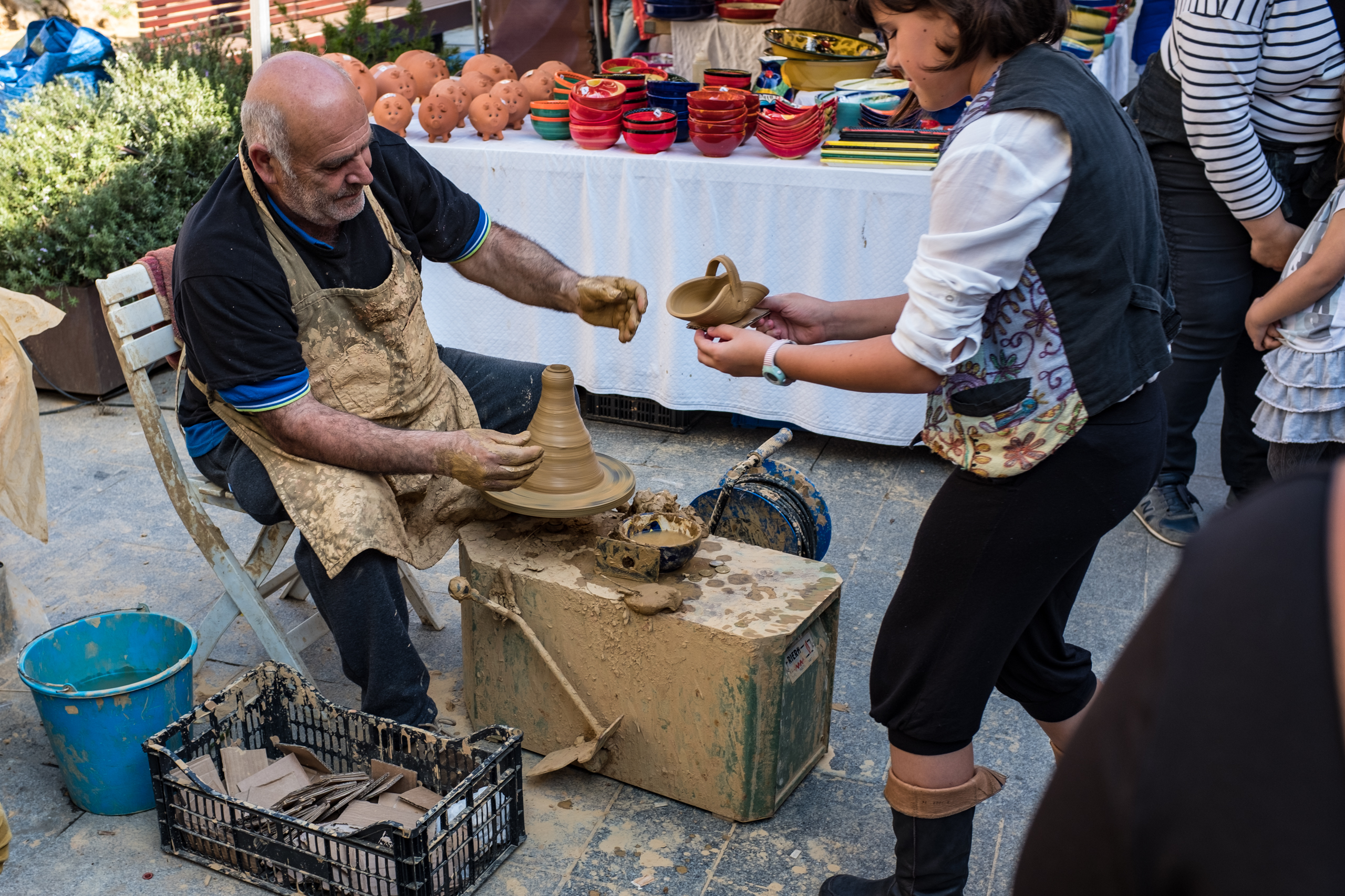 Гончар на глазах публики делает различные изделия и сразу их дарит. Понятно, что они необожжённые и мягкие. Но так, для прикола.