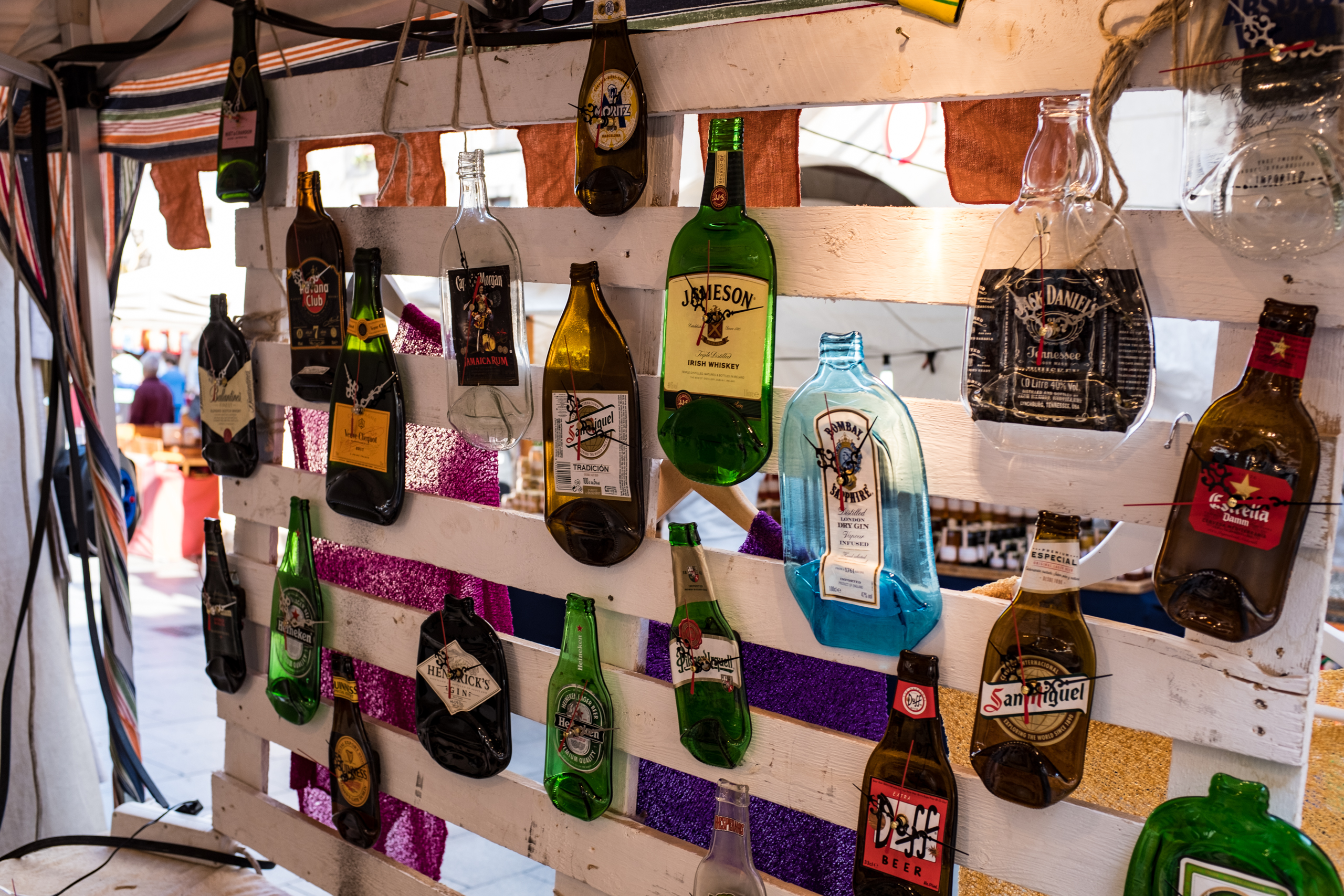Наклейки переклеивают внутрь бутылки. Это стекло. В Штатах тоже такие на ярмарках можно часто увидеть.