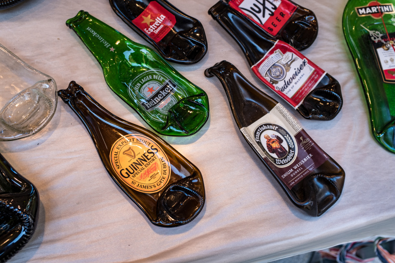Вот это было в первый раз. Обычные бутылки, которые нагревают и плющат в специальной форме. Получаются подставки для ложек, половников, щипцов и так далее. Вообще прикольно.