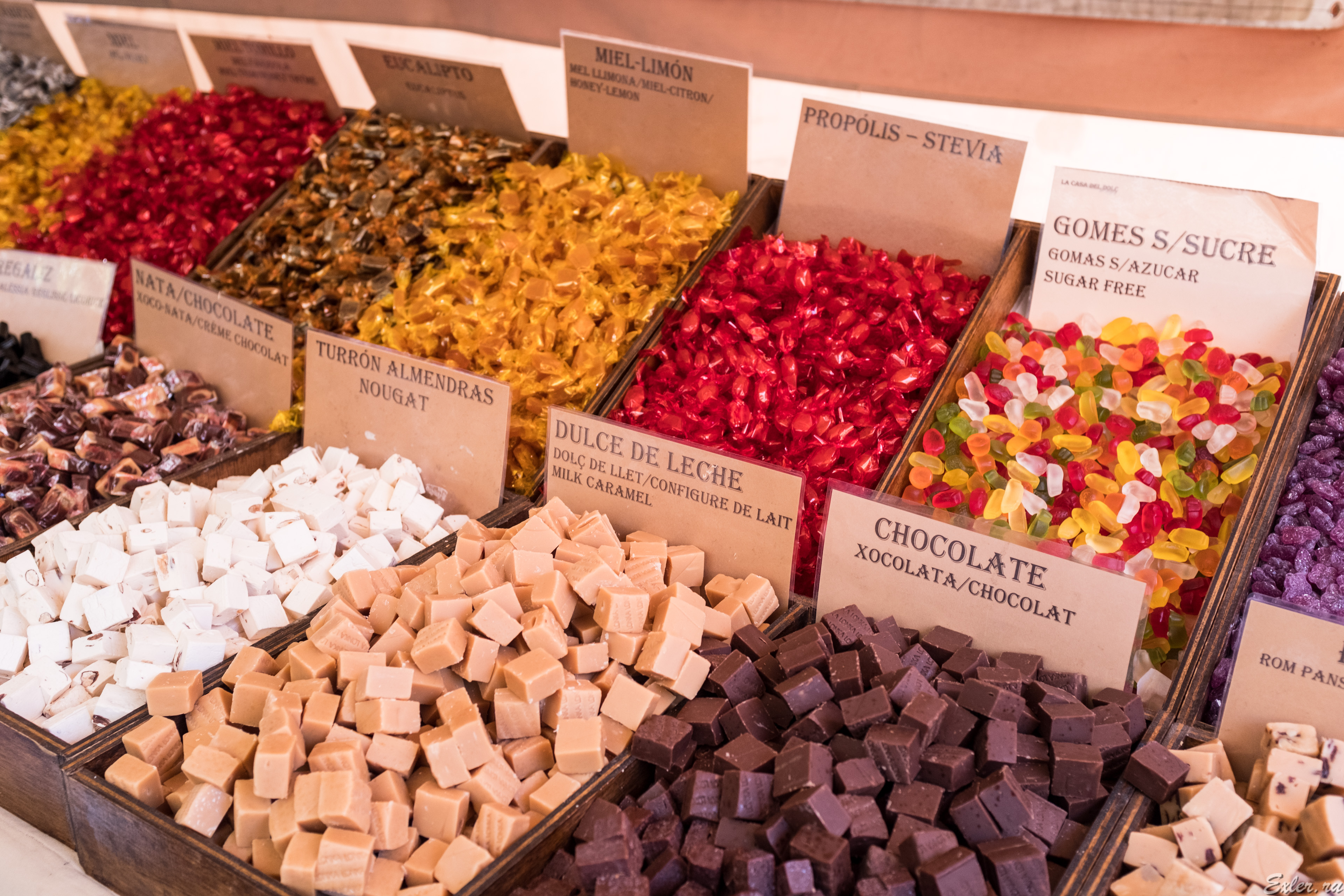 На первом плане слева - Llardons. Страшно популярная штука - холодные шкварки. То есть свиное сало, обжаренное и охлажденное. Постоянно на ярмарках продается, раскупается отлично. Дениса Руденко этой штукой угостили в одном из винных хозяйств (производящих каву, игристое) - ему очень понравилось.