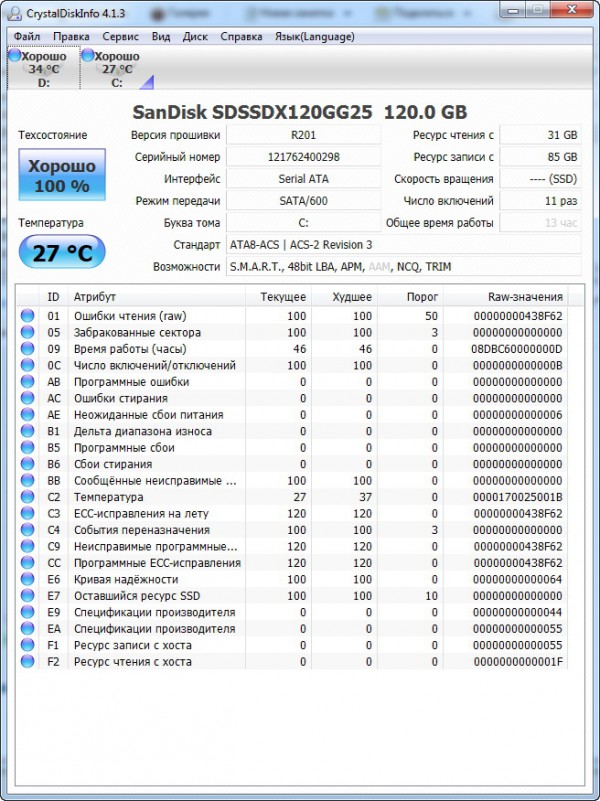 Поставил в свою рабочую персоналку. Вот что выдает CrystallDiskInfo.