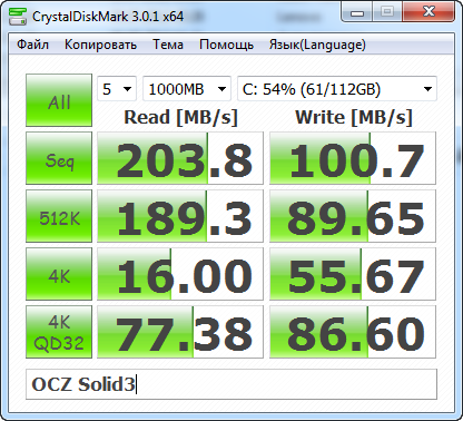Ну и, для сравнения, OCZ Solid3, который тоже дороже (впрочем, уже почти не продается).