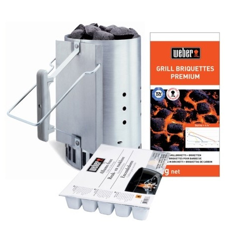 Филин, У меня точно та же веберовская разжигательница. Я просто пару комков бумаги в нижний "отсек" засовываю. Хватает чтобы даже lump (не знаю как по-русски - простой?) уголь запалить, а уж пропитаные брикеты как порох вспыхнут.