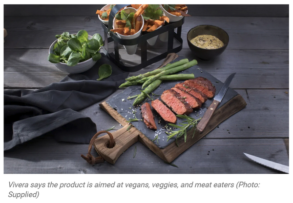 Статья "Tesco To Launch 'Breakthrough' Vegan Steak In 400 Stores Nationwide". Кратко. Крупнейшая сеть магазинов Tesco в 400 отделениях Великобритании запускает продажи вегетарианских стейков. Разработал эту хрень голландский производитель Vivera, в основе "стейка" - соя и всякие другие растительные продукты. Производитель нагло врет утверждает, что, мол, эта штука неотличима от обычного стейка, что, конечно же, полная чушь.