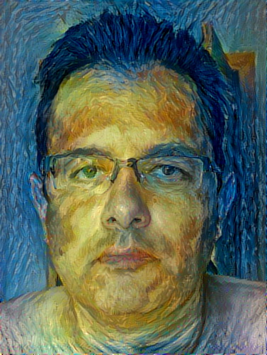 Вот никогда я не понимал этого увлечения. Помимо того, что это ни о чем, вроде как заказ написать слоган к празднику "под Маяковского", так еще и непохоже. Ну разве Ван Гог нарисовал бы так лицо? Вы посмтотрите на его портреты. Ну не рисовал он таких правильных фотографических лиц в такой прямой анфас (то есть иногда рисовал, но любим мы его не за это 😉 Ничего же нет вангоговского, кроме вставленной цветовой пары "импрессионистского" типа.
