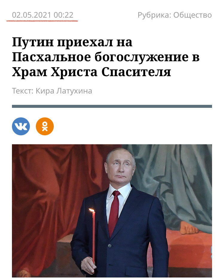 Еще странность. На фото с сайта кремля все прихожане в масках (и та самая "рыбачка" тоже там, кстати). Но маски уже отменили, и скорее всего в этом году все прихожане были без масок уже