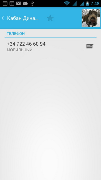 Вот этот контакт мне звонит на HTC One. Номер определяется как местный, без кода +34, но телефон четко определяет, кто это звонит - и показывает абонента.