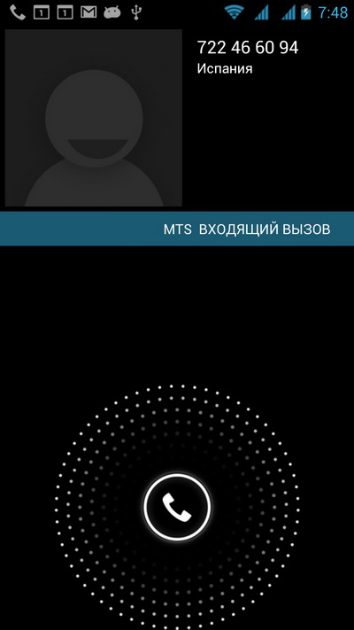 Вот он звонит и... смартфон не определяет абонента. Видимо, из-за того, что нет международного префикса.