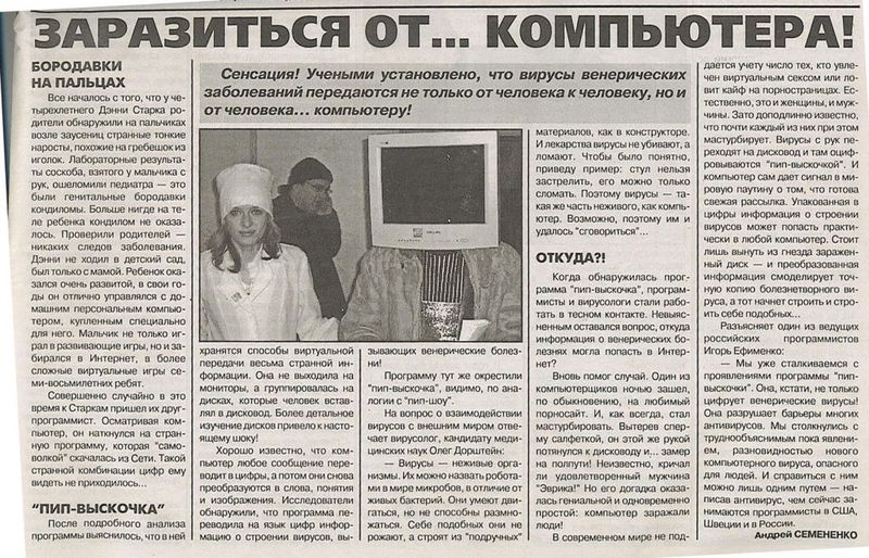 Хрен с ней,"Пип-выскочкой".. А сколько других вирусов можно словить? Гепатит, СПИД и т.д. Гандоны на флэшки надо надевать, одноразовые диски использовать!