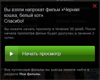 Хотите сохранить фильм в домашней коллекции - пожалуйста: оплачиваете и скачиваете фильм на компьютер. Достаточно его просто посмотреть один раз - нет проблем, платите значительно меньше и просто смотрите картину в онлайне. Ну и также предусмотрен вариант оформления подписки: платите всего 99 рублей и в течение месяца вам будут доступны для просмотра 1084 фильмов и 70 сериалов!