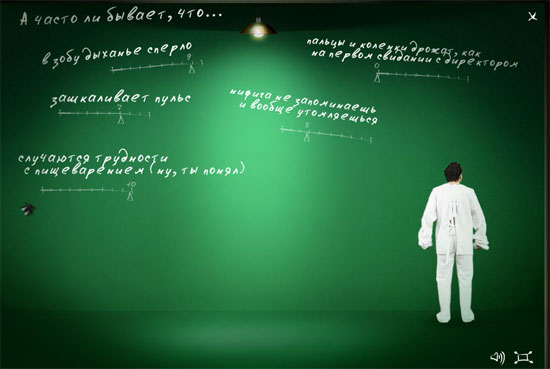 Забавная штучка - стрессометр. Вообще это реклама каких-то антистрессовых витаминов, но сделано очень и очень остроумно и забавно.