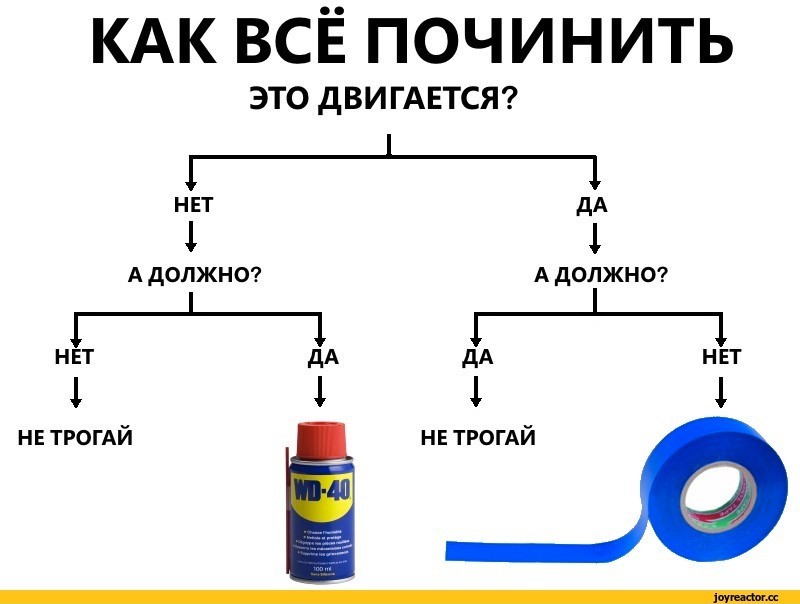 Погодь! А как же wd-40? Для любого ремонта есть только эти два решения - duct tape и wd-40!
