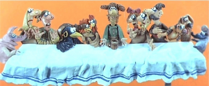 Если бы мне не сказали, что это пародия на Тайную Вечерю, я бы сам не понял.