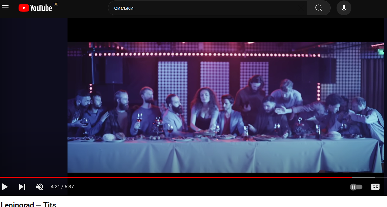 Тем более, что это пародия не на "Тайную вечерю", а на "Праздник богов", картину, на которой изображено празднество богов Олимпа. А поёт лежащий на переднем плане Дионис. Весьма уместно в контексте Олимпиады, согласитесь.