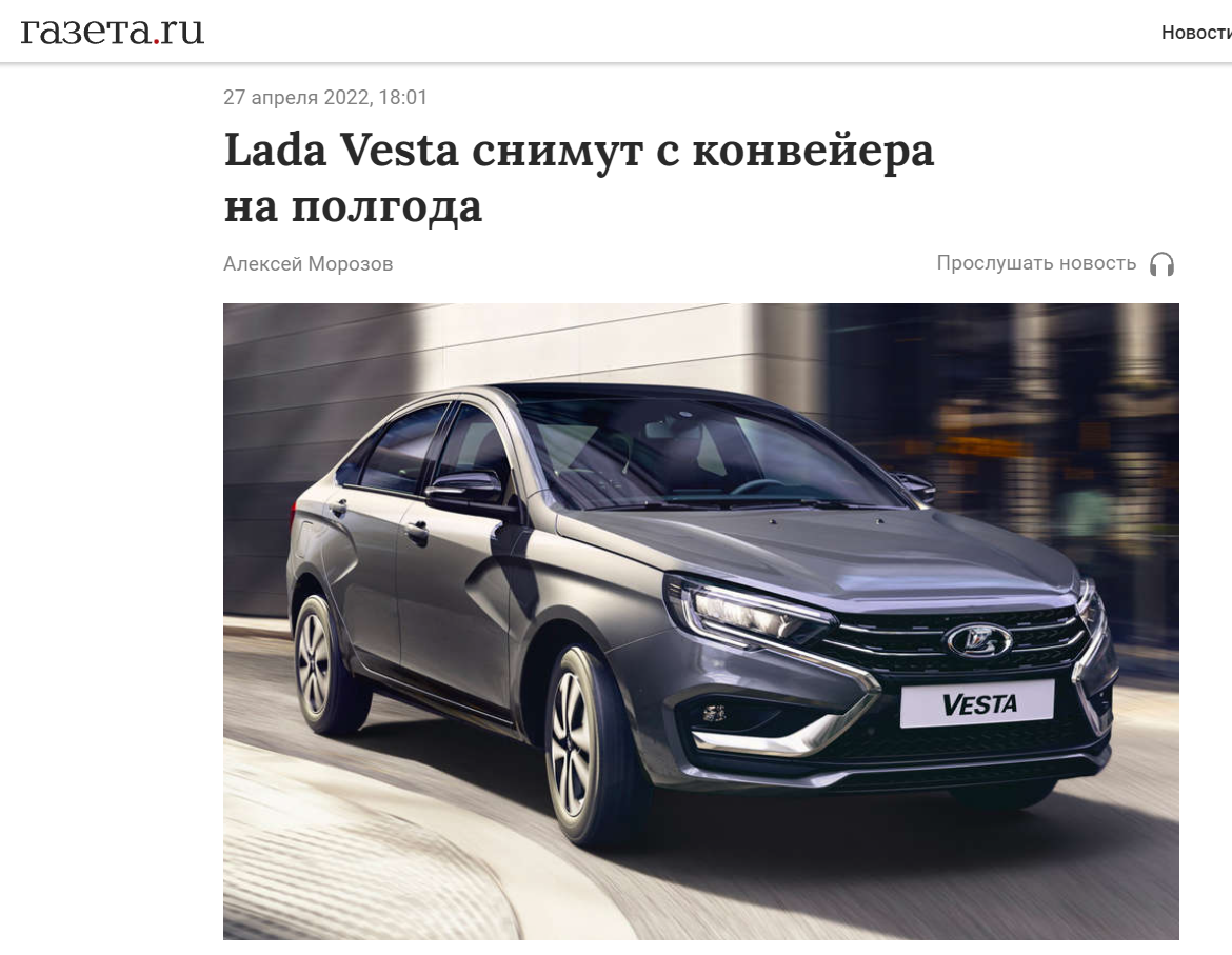 Как-то грустно об этом писать, но похоже Лада Веста всё. Автоваз минимум на полгода останавливает её сборку на заводе в Ижевске и не будет запускать её на конвейере в Тольятти. В связи с отсутствием комплектующих. Это жалко главным образом не с точки зрения того, что Веста это один из самых продаваемых автомобилей на российском рынке, она когда первая, когда вторая по продажам, меняясь местами с Грантой. В основном это печально с точки зрения того что Веста действительно достойный автомобиль.