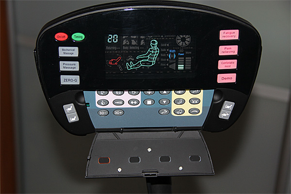 Управляется кресло вот с такого пульта, где большими кнопками выбираются основные режимы.