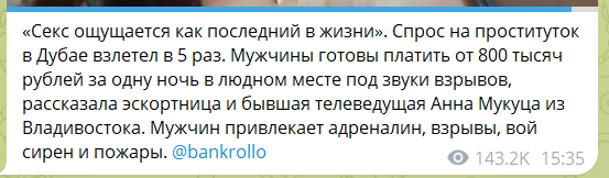кстати да, она ж страшная как сто подвалов, а тут ещё взрывы, вой сирен и т.д. не так бы я хотел последний секс в жизни. а то, что она там назвиздела про миллионы за ночь, так это обычная самореклама. у проституток вполне распространено