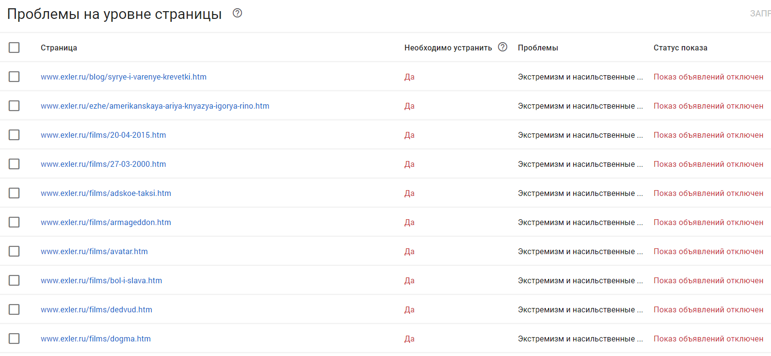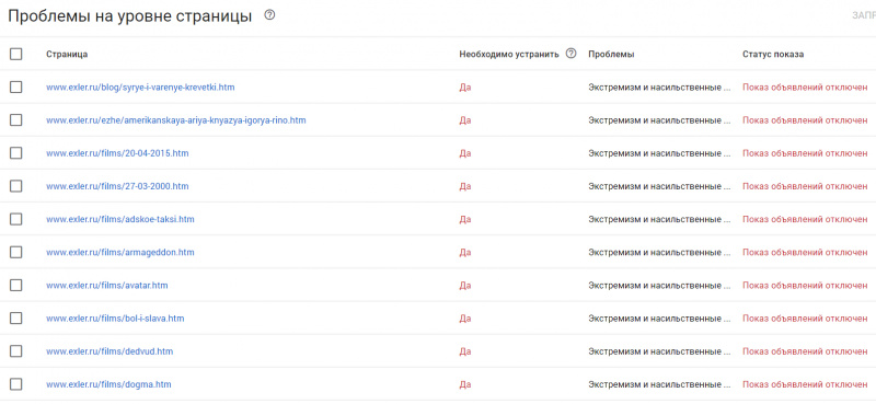 Но тут же он мне подбросил еще 150 страниц в бан за экстремизм. Я их тоже пересмотрел и отправил на перепроверку. С ними тоже оказалось всё ОК.