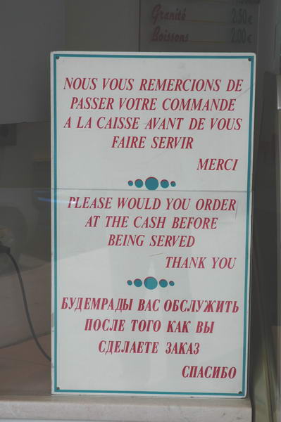 Зато потом, через несколько месяцев, все каннские забегаловки оборудовали бы табличками: