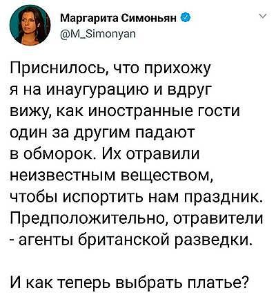 P.S. И ещё немного юмора от Маргариты Симоньян. Ну, точнее, того, что она считает юмором. Тоже довольно трогательно.