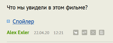 Сделали тэг "спойлер" в комментариях. В основном, пригодится для комментариев к рецензиям на фильмы, но могут быть и другие случаи, когда этот тэг будет полезным. Также под спойлер рекомендуется убирать большие простыни текста, которые вы цитируете.