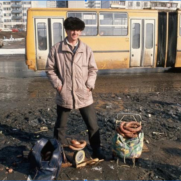 100% - весна 1992 года. Именно такой я её помню, грязь под ногами, желтый Икарус, даже куртка, что на мужике - по фасону и материалу напоминает куртку, в которой я ходил в школу зимой. 😄