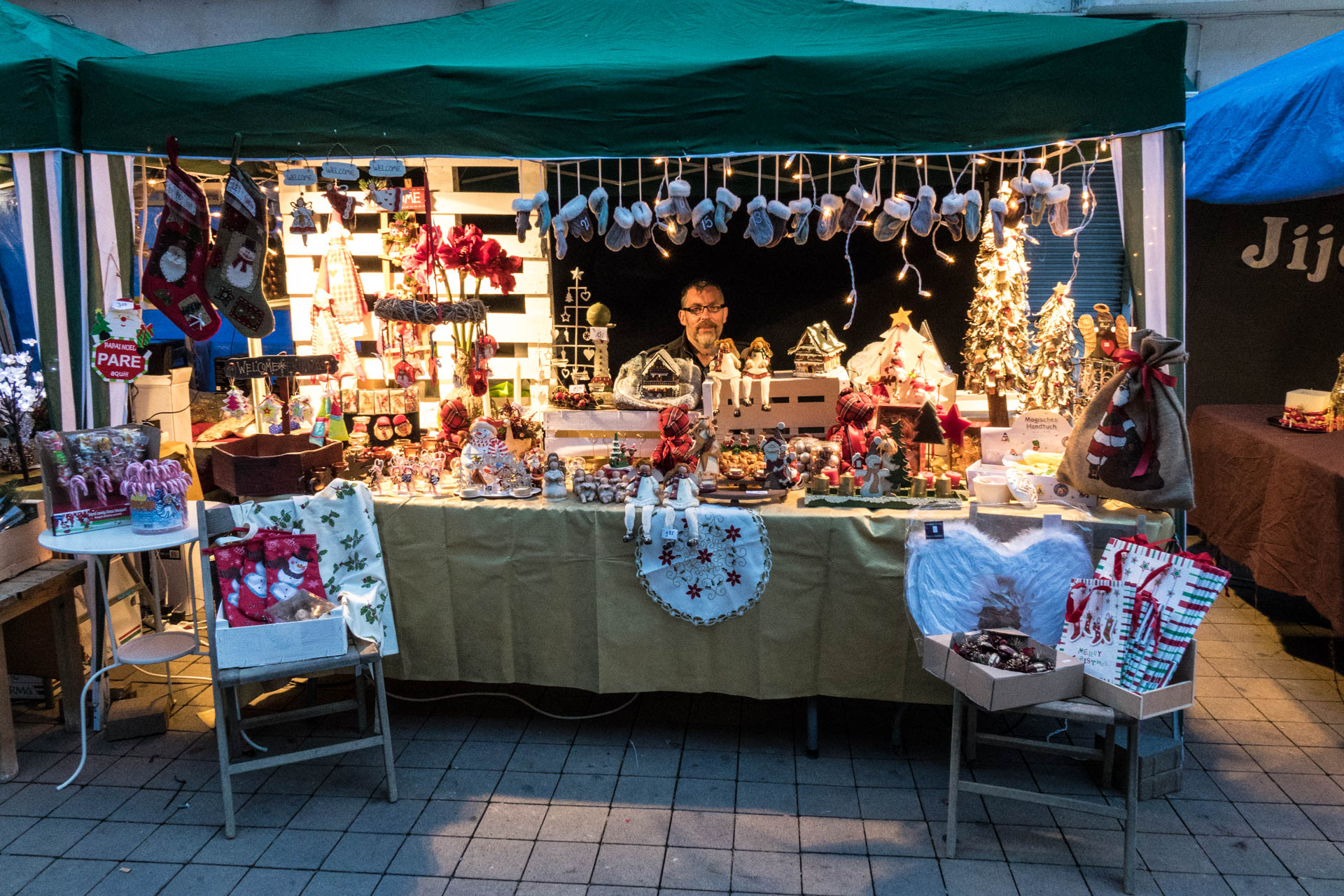 Палатки со всякой рождественской символикой.