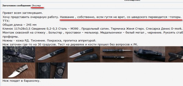 Вот он, нож "Экслер". Что со шведского переводится - топоры. Нож, кстати, красивый.