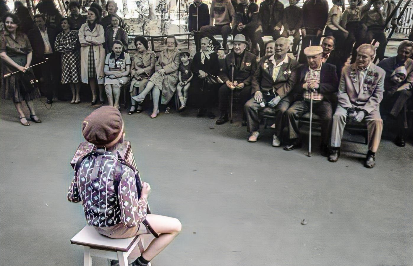 А раньше мы встречали День Победы вот так - с настоящими и тогда еще почти в каждой семье жившими ветеранами, душевно, по-родному...