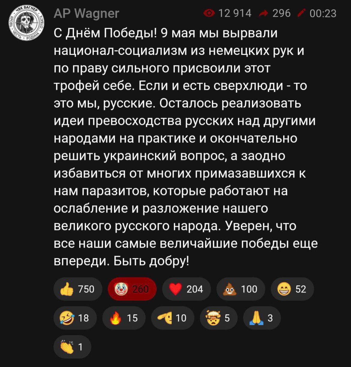 Кстати, сегодня у Димы на интервью был один зэк, не вагнеровский, а от министерства нападения. Так он говорил, что из завербованных вагнеровцами многие вернулись через полгода. Звонили своим бывшим сокамерникам, радостные такие, на свободе. Это и сподвигло его и других пойти во вторую волну набора. Хоть они тысячами и лежат на обочинах украинских полей, но вернется достаточно, чтобы кошмарить население.