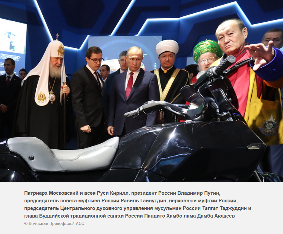 Корпорация "Ростех" показала российскому лидеру тяжелый мотоцикл "Иж", разработанный для проекта "Кортеж". Как сообщил директор по особым поручениям "Ростеха" Василий Бровко, первая партия мотоциклов выйдет уже в первой половине 2018 года. Технику, по словам Бровко, разрабатывает концерн "Калашников". Мотоцикл может разгоняться до 250 километров в час, у него бензиновый и оппозитный двигатель, мощность которого 110 киловатт. (Отсюда.)