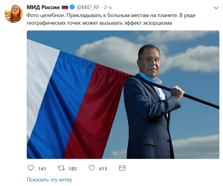 Тот самый случай, когда официальный твиттер МИД России переплюнул официальный твиттер МУД Роисси. Захарова там вообще не просыхает, что ли? Кто там поблизости, налейте тетке рассольчику, а то она совсем вразнос пошла.
