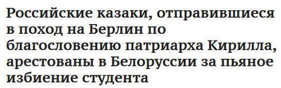 Бог помогает! Ведь по благословению Патриарха, то есть тот звякнул САМОМУ! и понесли прихожане "на поход православный" ведь ничего нет для укрепления веры чем кучка пьяных клоунов в Берлине. весною помниться одни тоже ехали, но так-же только до Белоруси смогли доехать.