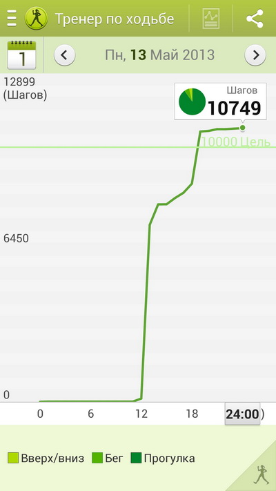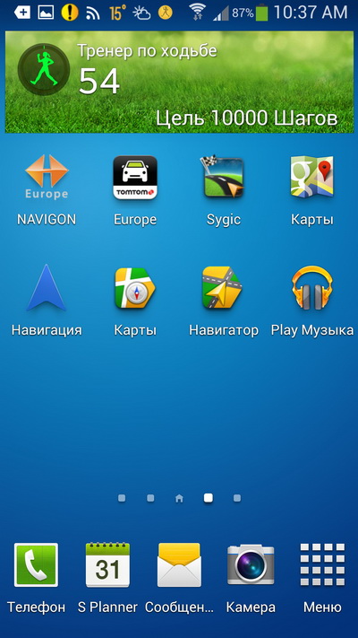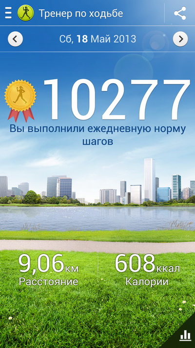 Но в Galaxy S 4 обнаружилось приложение S Health ("Тренер по ходьбе"), у которой, к тому же, имеется удобный и наглядный виджет. Выглядит виджет вот так.