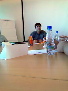 Фотография сделана мобильным телефоном, да еще и в минимальном разрешении - не заметил, что с нормального переключилось на минимум. Эрик сейчас в Москве и вчера в офисе Microsoft встречался с различными разработчиками, в компанию к которым затесался и я, хотя я совсем по другому профилю. Но с Эриком пообщаться было очень интересно. Кстати, это именно он снимался в знаменитом стебовом клипе Windows of choice.