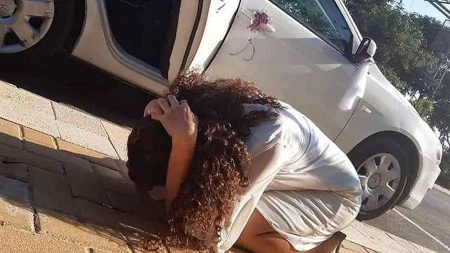 Возможно, через какое-то время это будет восприниматься курьезом. Свадьба, невеста вся в белом и "Цева адом" ("Красный цвет" - так в Израиле называют воздушную тревогу).