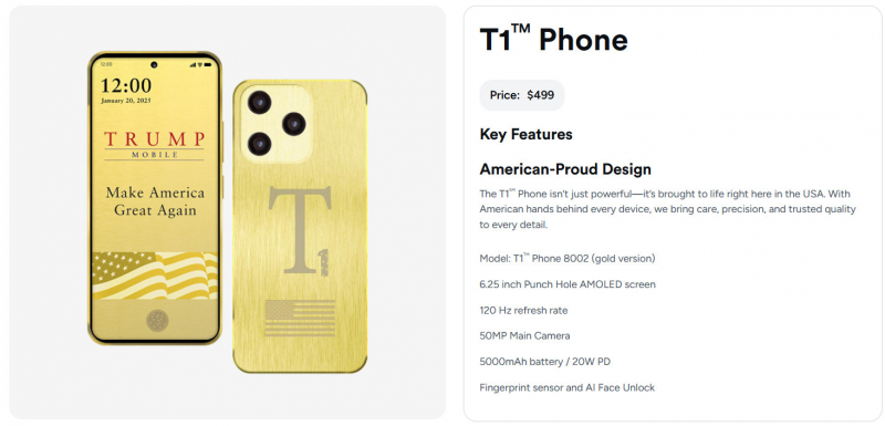Впрочем, журналисты раскопали, что FCC выдала сертификацию на некий телефон "T1" в январе. При этом телефон выпущен некой непонятной конторой под названием Smart Gadgets Global (у них и сайт свой есть, smartgadgetsglobal.com), но CEO там числится тот же Eric Thomas, который один из руководителей Trump Mobile.