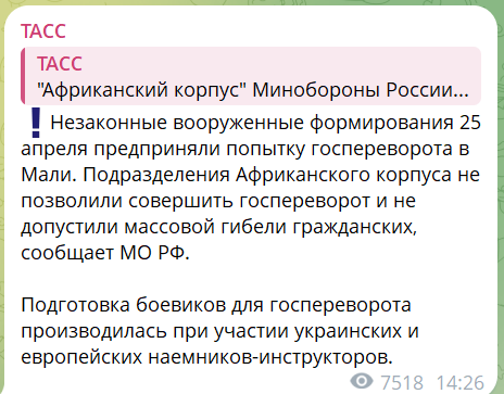 Россияне не в курсе про Туапсе, у них победа в Мали.