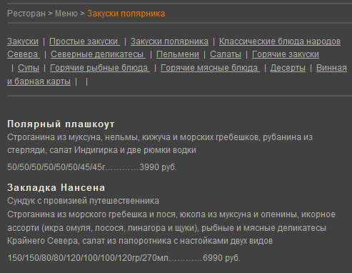 Пока понтовые маськвичи жрут свои кровавые стейки во всяких гудманах и прочих чако-грилях за полторы тысячи рублей и это в кризис, выяснилось, что есть намного более интересные места, где понтов намного больше, да и пища - круче любых стейков-расстейков! Место это называется "Эсепедисия, насяльник", а цены там следующие (ссылку не даю, а то они расчувствуются и будут меня бесплатно этим кормить - я такого не выдержу).