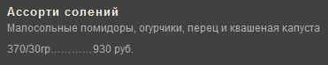 На этом фоне я думал, что ассорти из соленых огурчиков, помидорчиков и чуть-чуть капусточки будет стоить тысячи две - ан нет, совсем дешевка, налетай!
