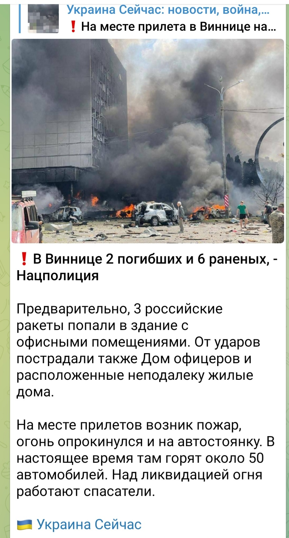 Это результаты сегодняшнего прилета мирной ракеты по нацистским детям в Виннице.