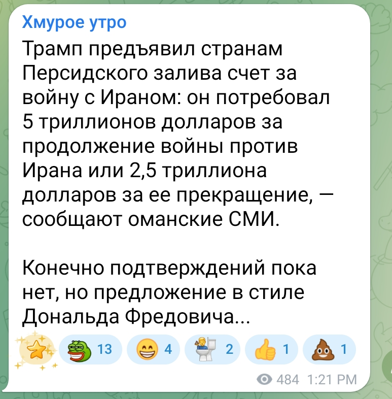 И, чувак, а вот тебе разве не приятно, что Трамп выносит ракетную и БПЛА промышленность Ирана? Разве это плохо для Украины? И то, что сейчас сложилась прекрасная ситуация для Украины наладить хорошие отношения с богатыми странами Ближнего Востока? Чувак.