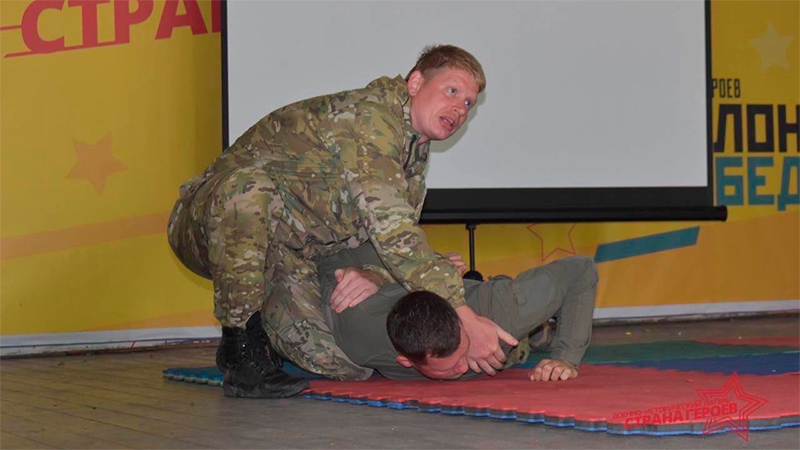 Также приемы разгона митингов показывали на церемонии посвящения в кадеты в Златоусте. Спецназовцы ФСИН наступали на воображаемую толпу с криками «Палкой бей» и синхронно выполняли соответствующие удары. Похожее мероприятие прошло в военной комендатуре Екатеринбурга для членов «Юнармии».
