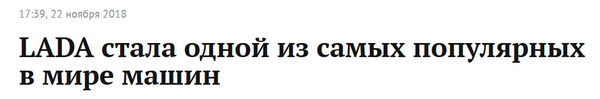 Увидел заголовок на "Ленте" - и аж поперхнулся. Это с какого-то такого бодуна данное ведро с болтами вдруг стало одним из самых популярных, да еще и в мире?!! Ладно еще, в России Lada действительно хорошо продается - исключительно по причине относительной дешевизны. Но в мире-то, в мире? Или они это сравнивался действительно исключительно с ведрами с болтами, а не с автомобилями?
