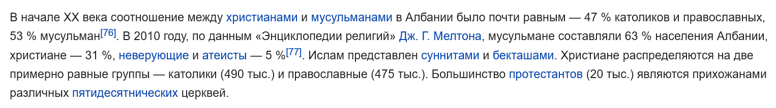 Это забавно, учитывая преобладание мусульманского населения в Албании.