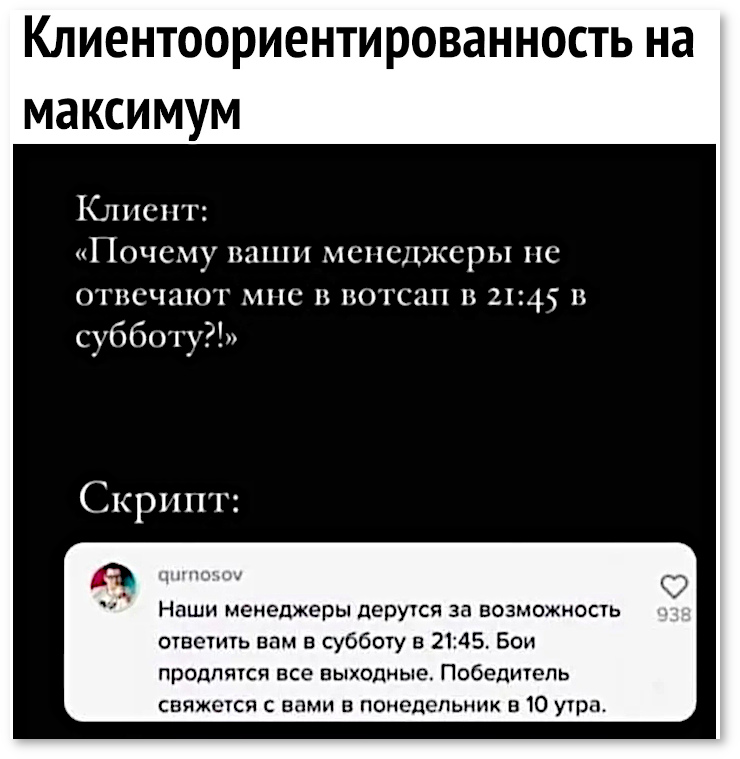 кмк, у нас с Вами разное прочтение - Вы видите упражнение в хамском ответе, я вижу стёб над доморощенными лжепсихологами и их адептами. А ситуация так, для примера